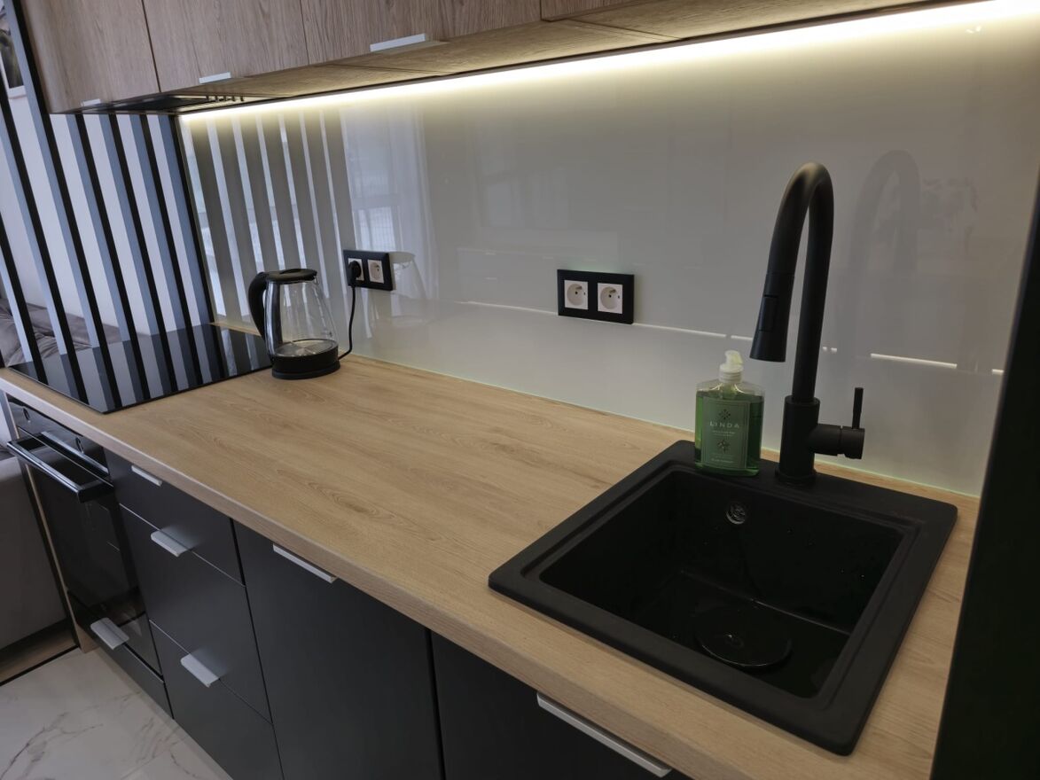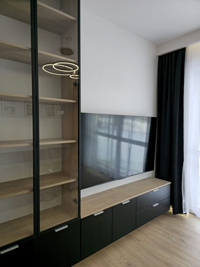 Mieszkanie wykończone wysokiej jakości materiałami z dbałością o detale. Łączy funkcjonalność z przytulnym klimatem, prywatny ogród 145m2 ogrodzony . Mieszkanie jest w pełni umeblowane w tym :